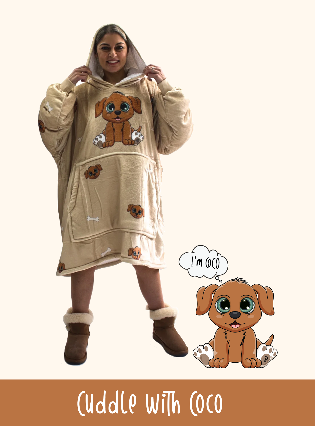 Pair yourself or a loved one with the CoCo Snoozy Hoodie Blanket and enjoy the warmth and cosiness it brings while watching a movie, reading a book, snuggling with your furry pet or even going to the shops!