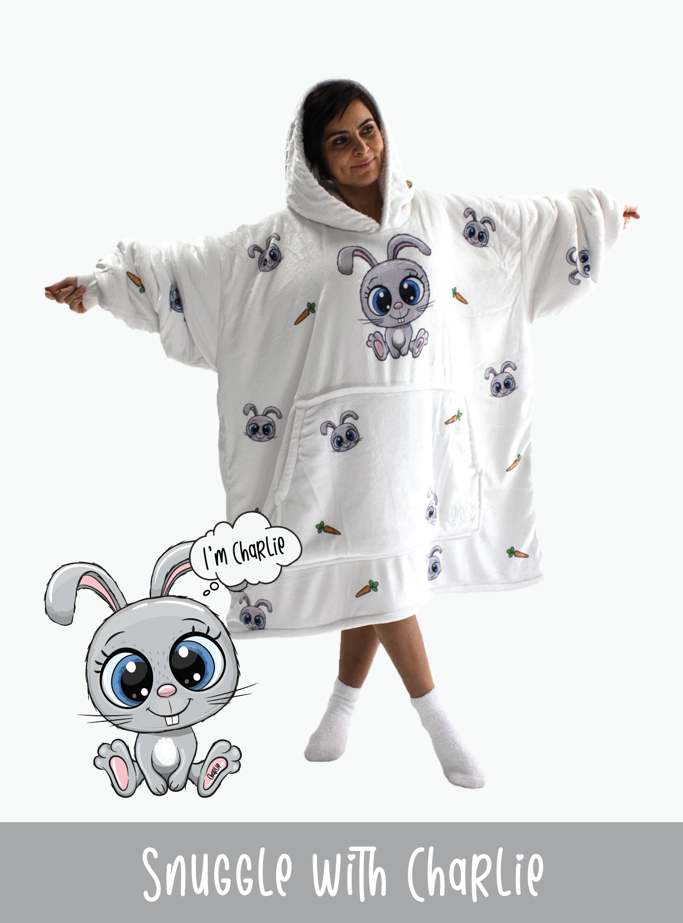 Pair yourself or a loved one with the Charlie Snoozy Hoodie Blanket and enjoy the warmth and cosiness it brings while watching a movie, reading a book, snuggling with your furry pet or even going to the shops!