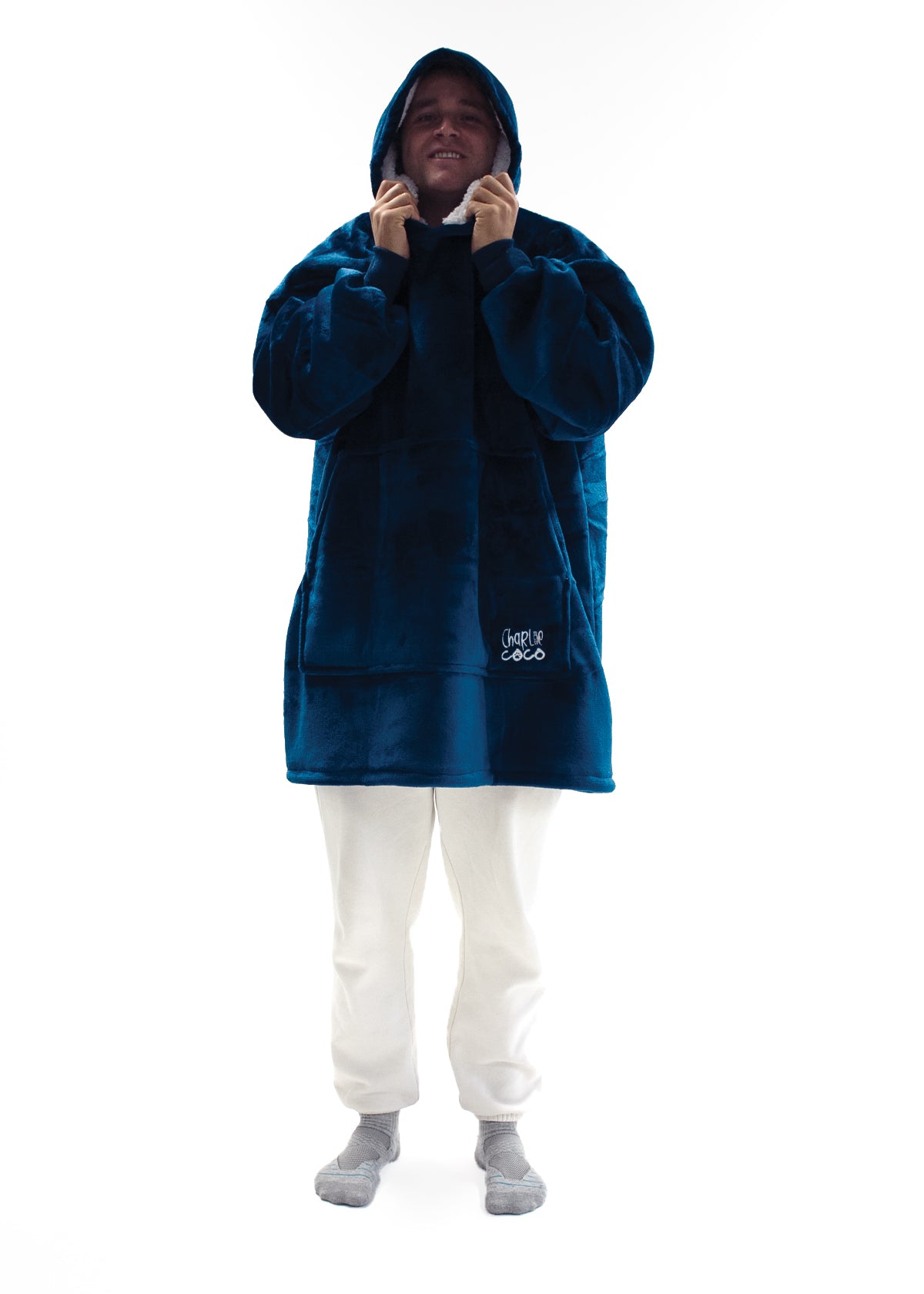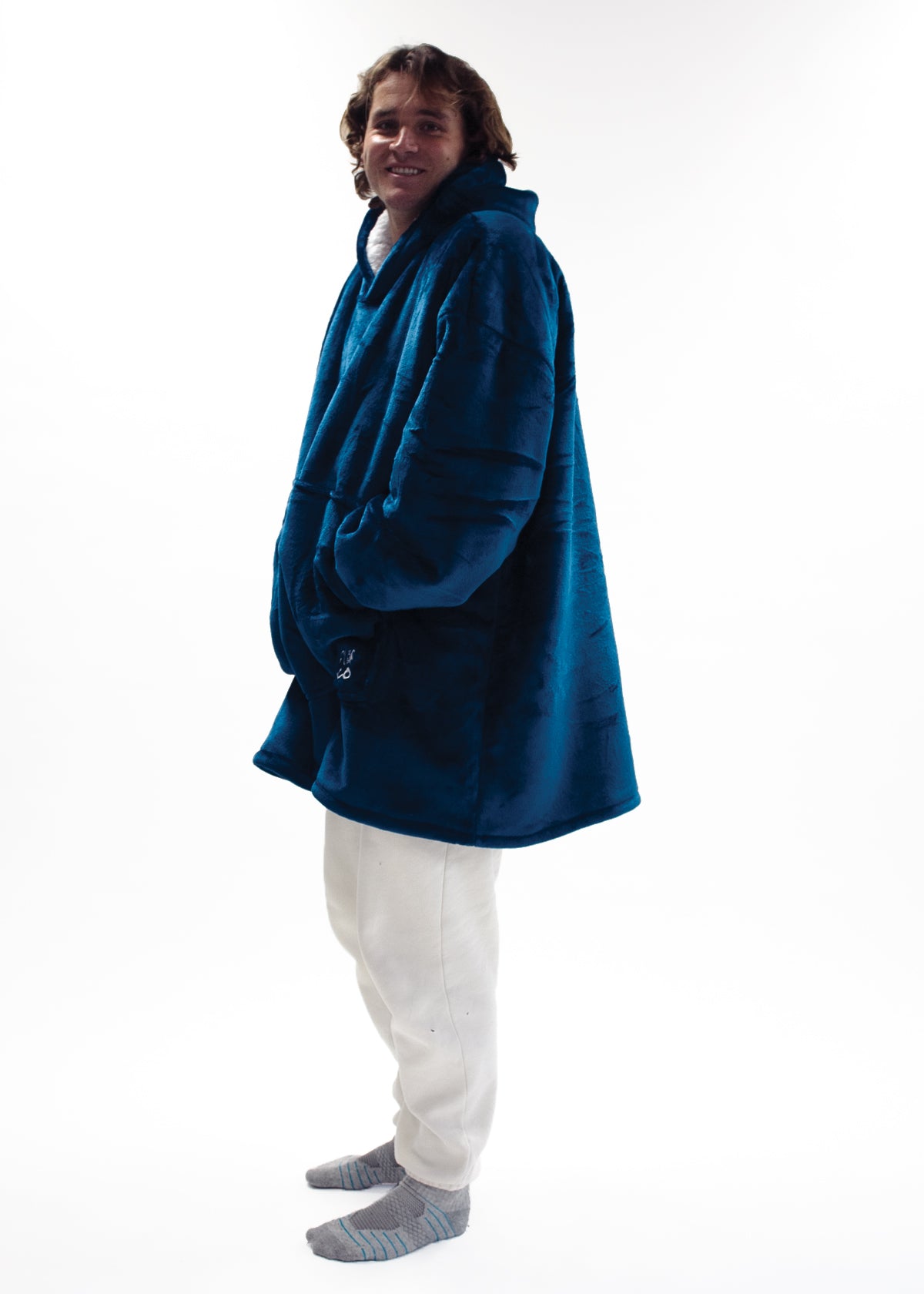 Pair yourself or a loved one with the Navy Snoozy Hoodie Blanket and enjoy the warmth and cosiness it brings while watching a movie, reading a book, snuggling with your furry pet or even going to the shops!