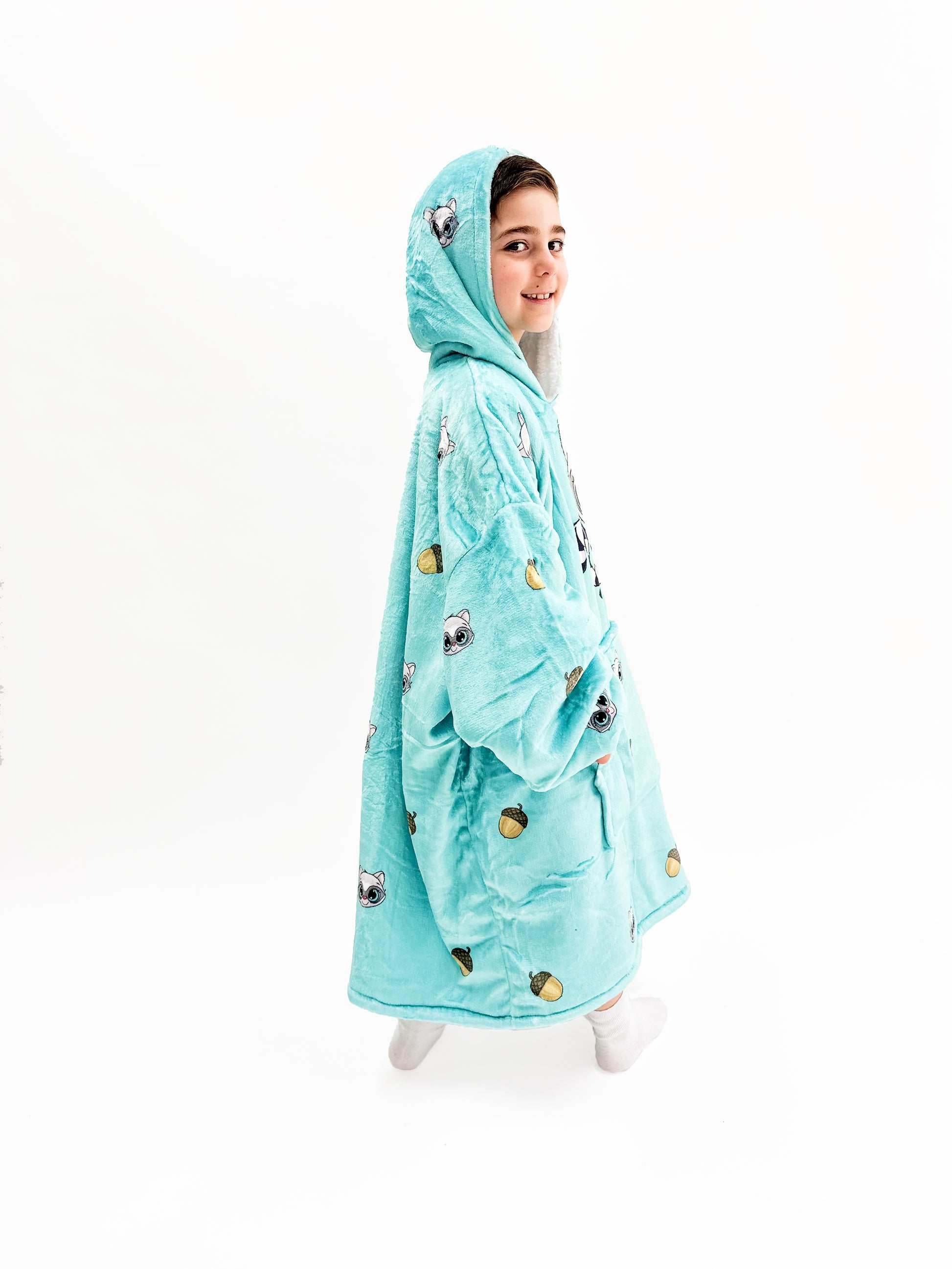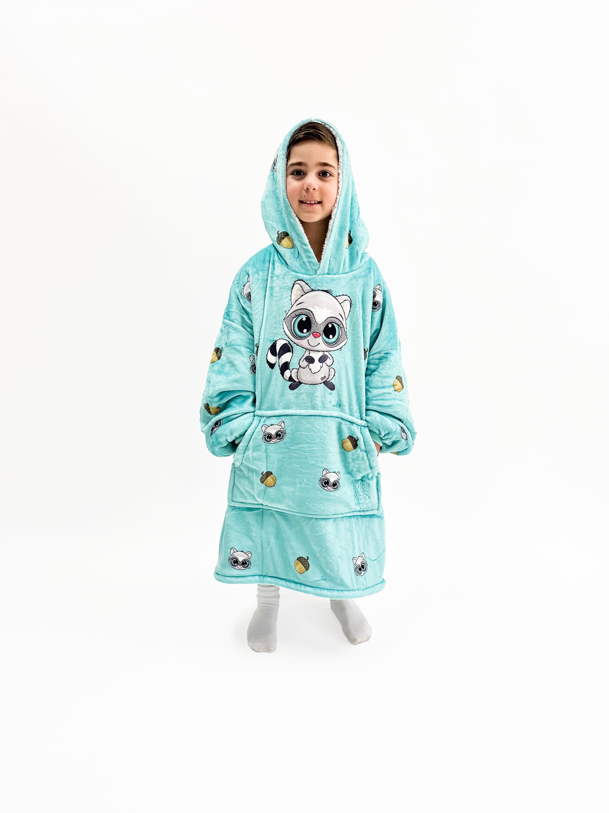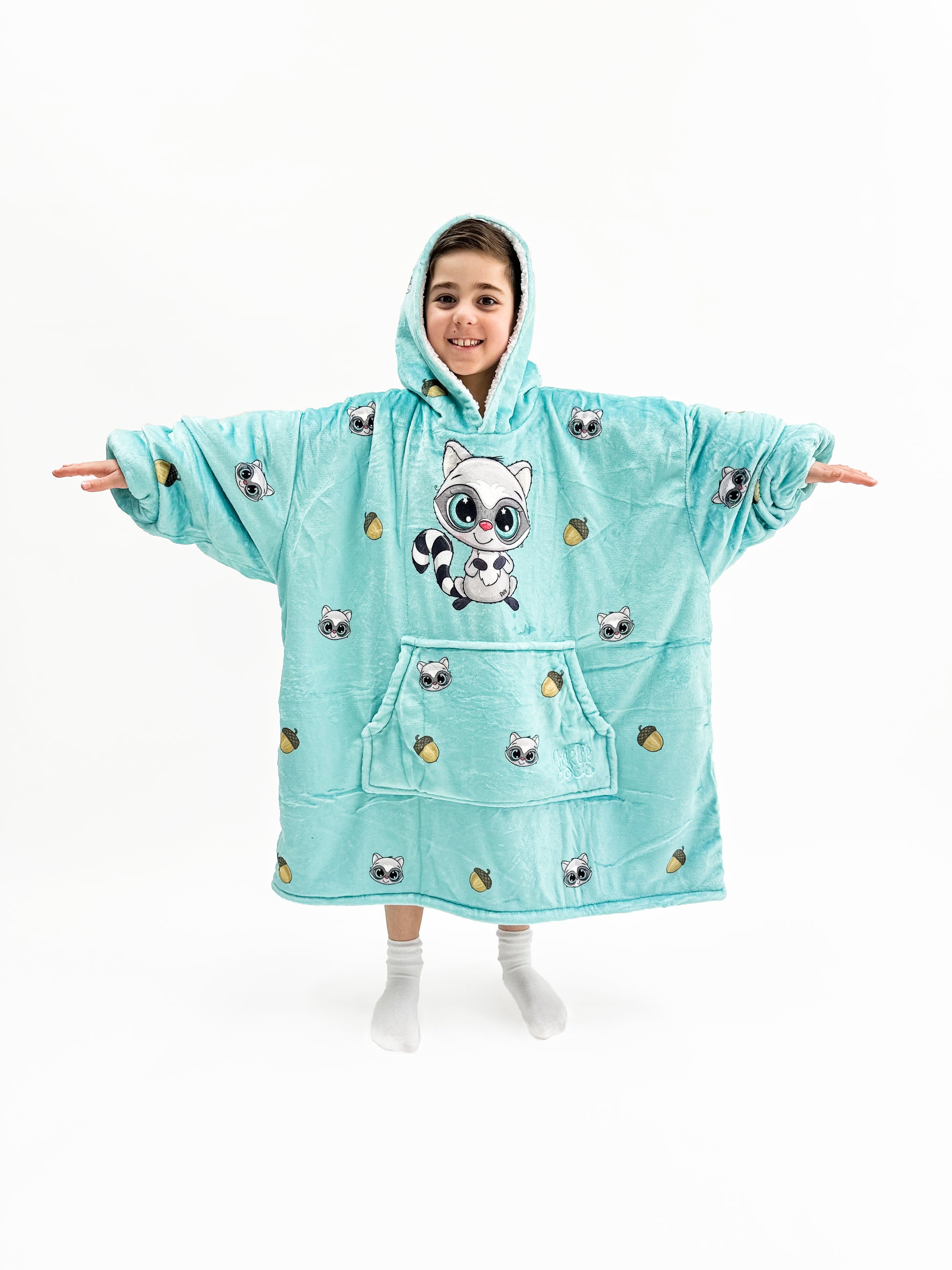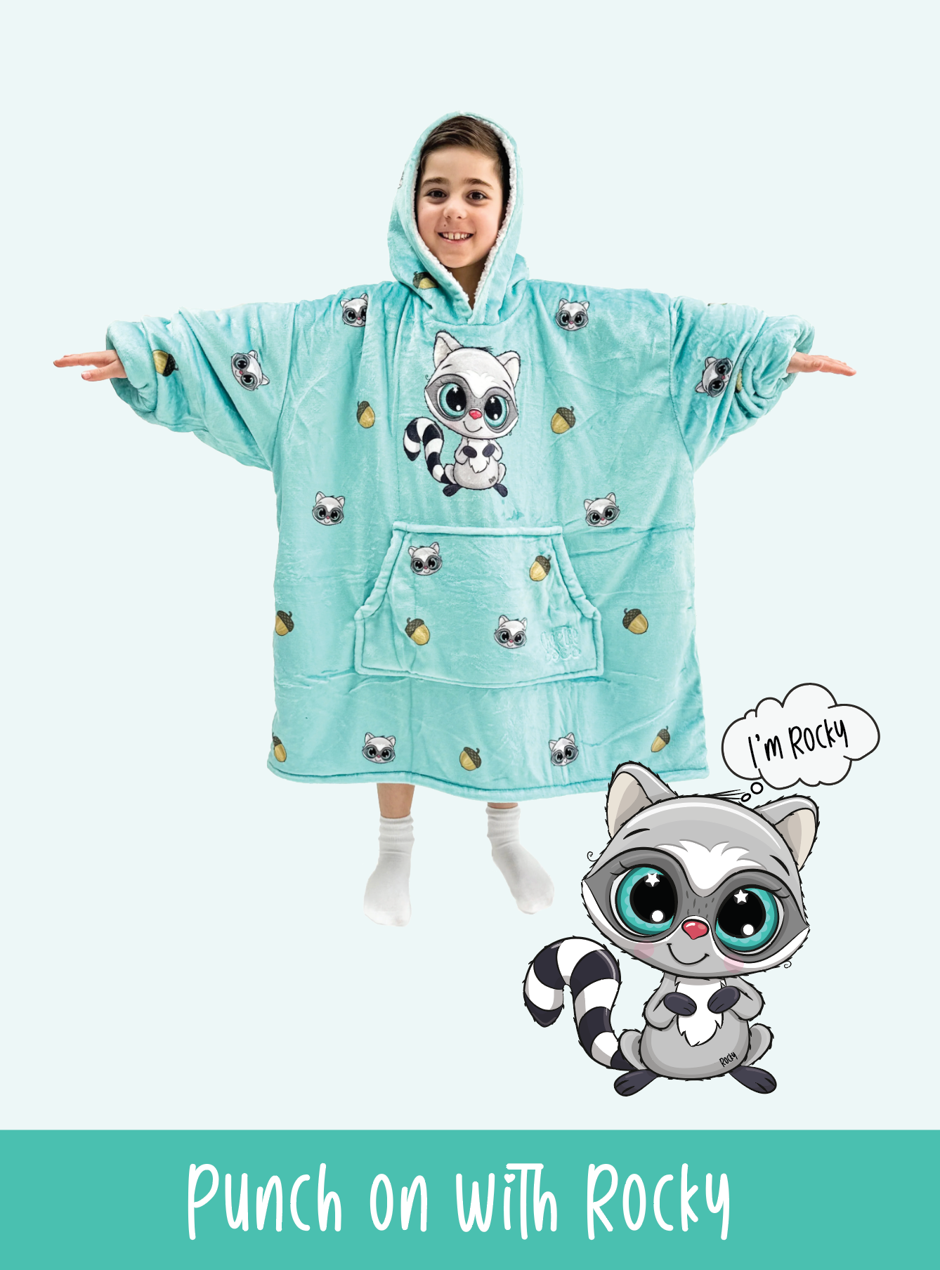 Pair your child with the adorable kids Rocky Snoozy Hoodie Blanket and they will enjoy the warmth and comfort it brings while playing, watching tv, reading a book, or even going to the shops!
